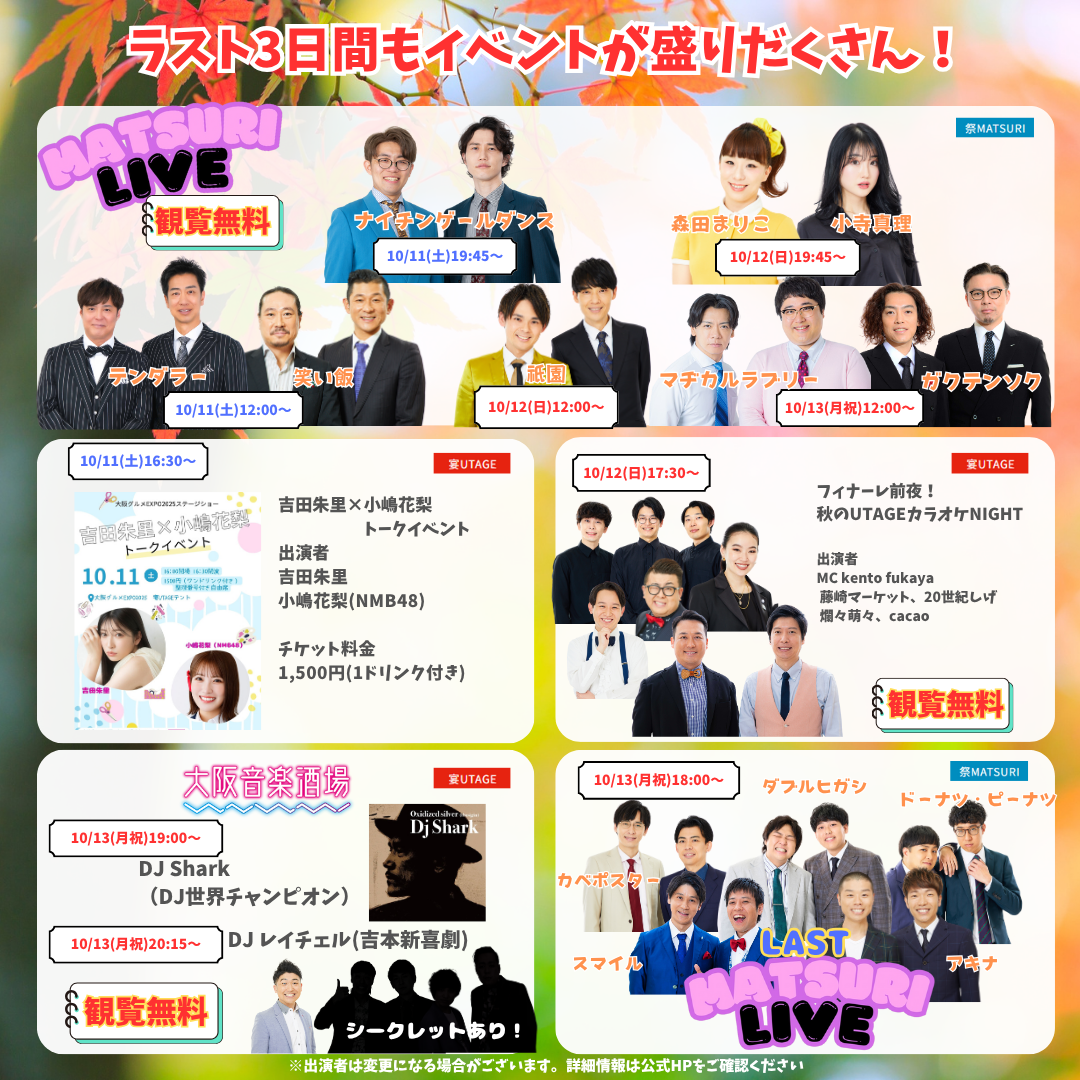 2025年10月09日(木)ラスト3日間!11日~13日は豪華イベント盛りだくさん☆