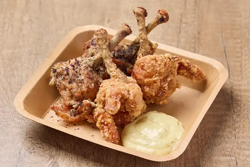 骨付きで食べやすく仕上げた唐揚げは、見た目もインパクト抜群でジューシーな味わい。
